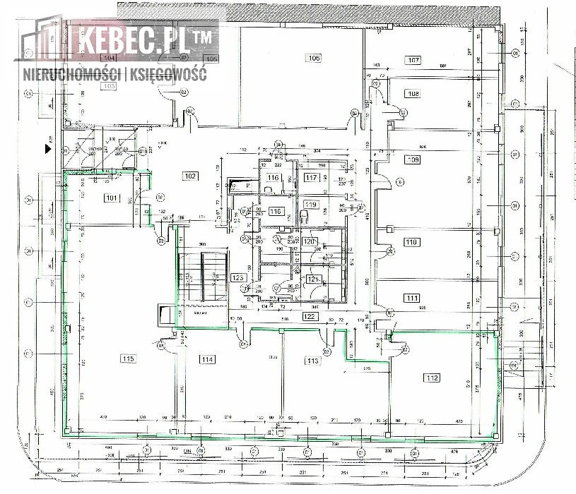Pomieszczenia na parterze oznaczono na rzucie numerami: 101, 112, 113, 114, 115 natomiast istnieje również możliwość wydzielenia do wyłącznego użytku części korytarza oznaczonej numerem 122.
