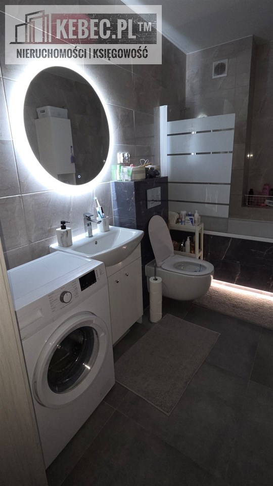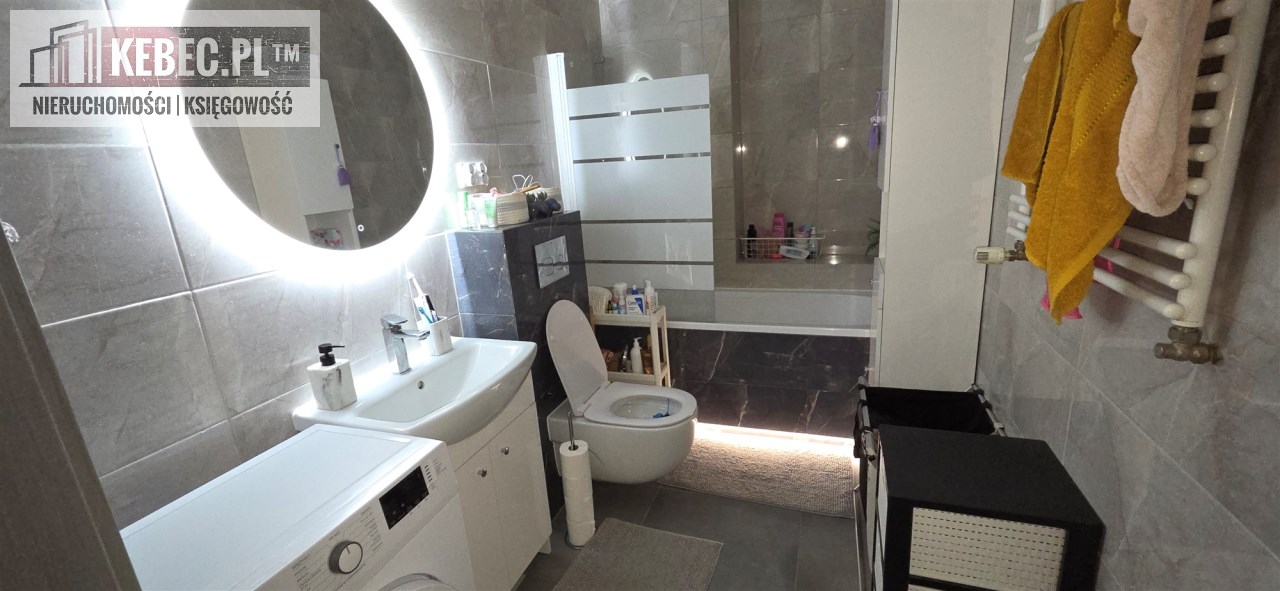 - dużej łazienki z kabiną prysznicową, na wyposażeniu pralka,